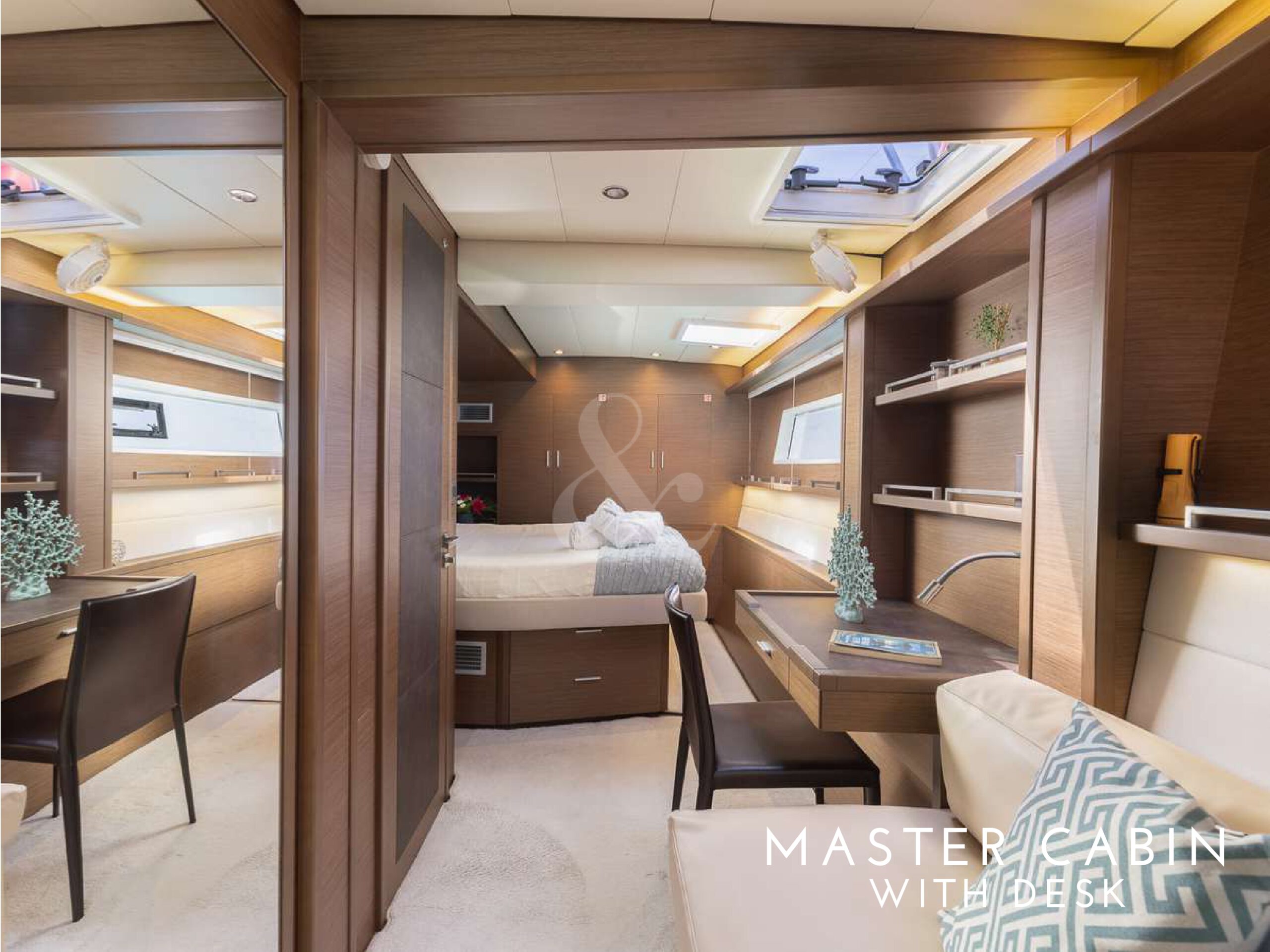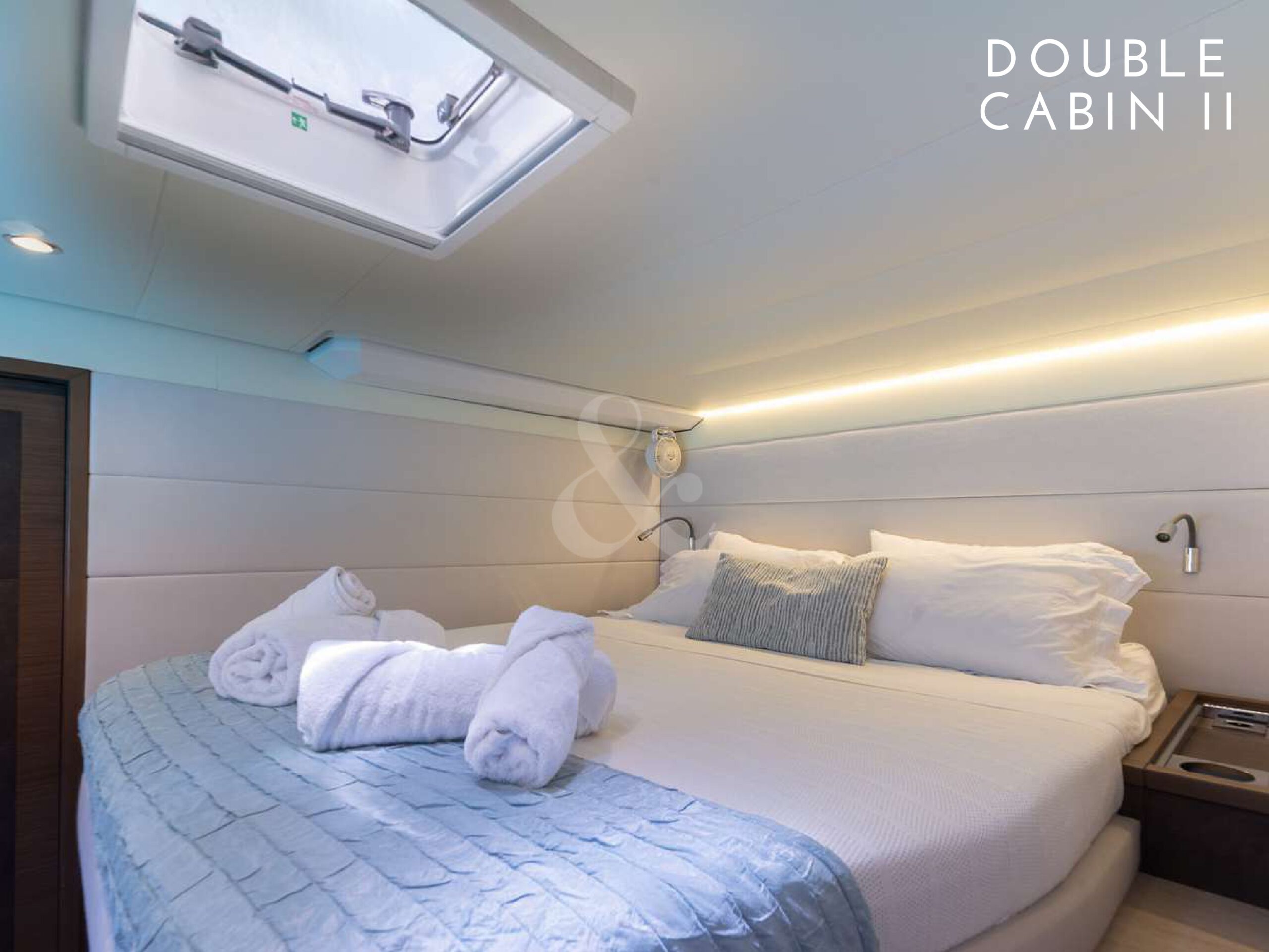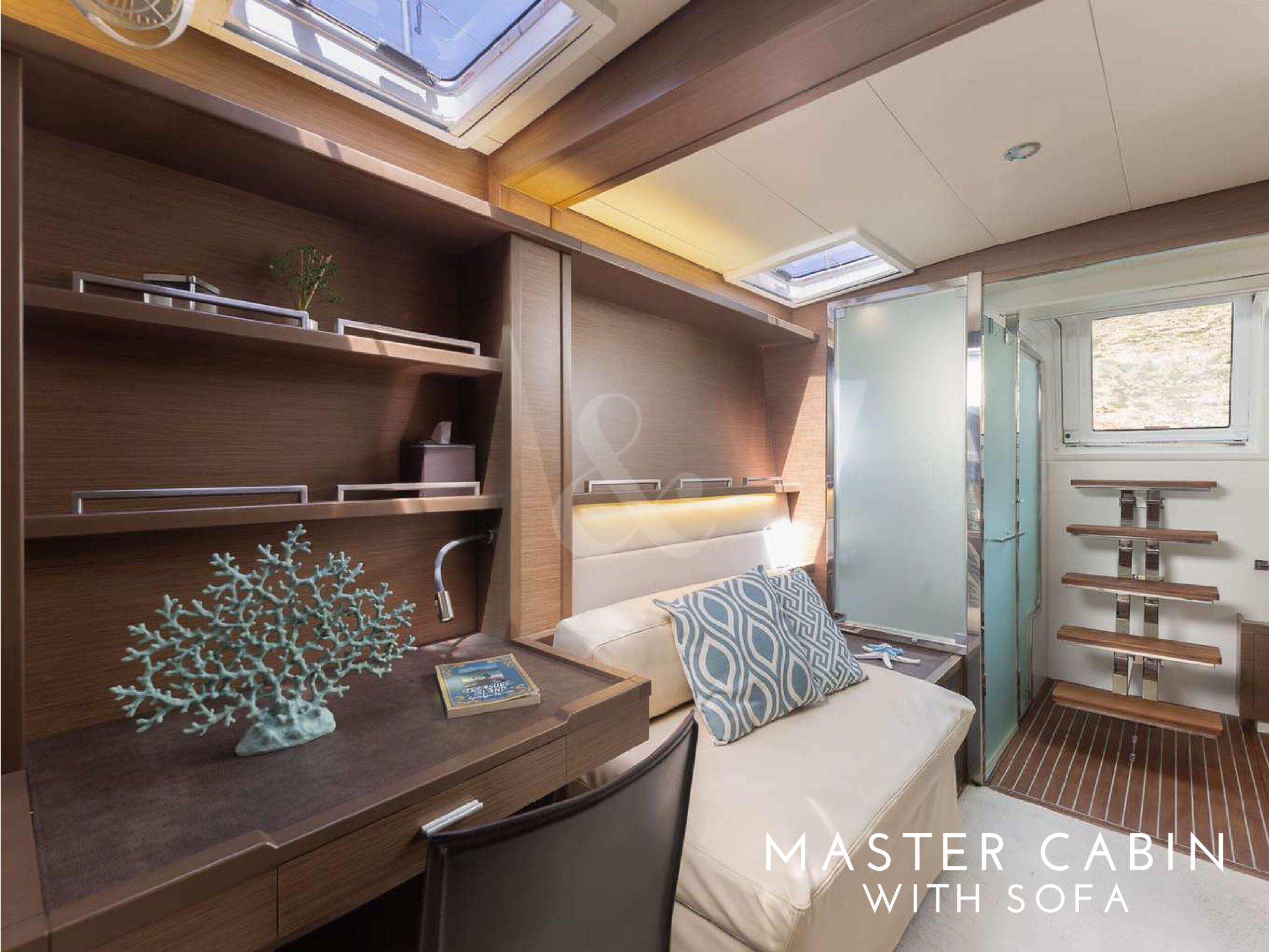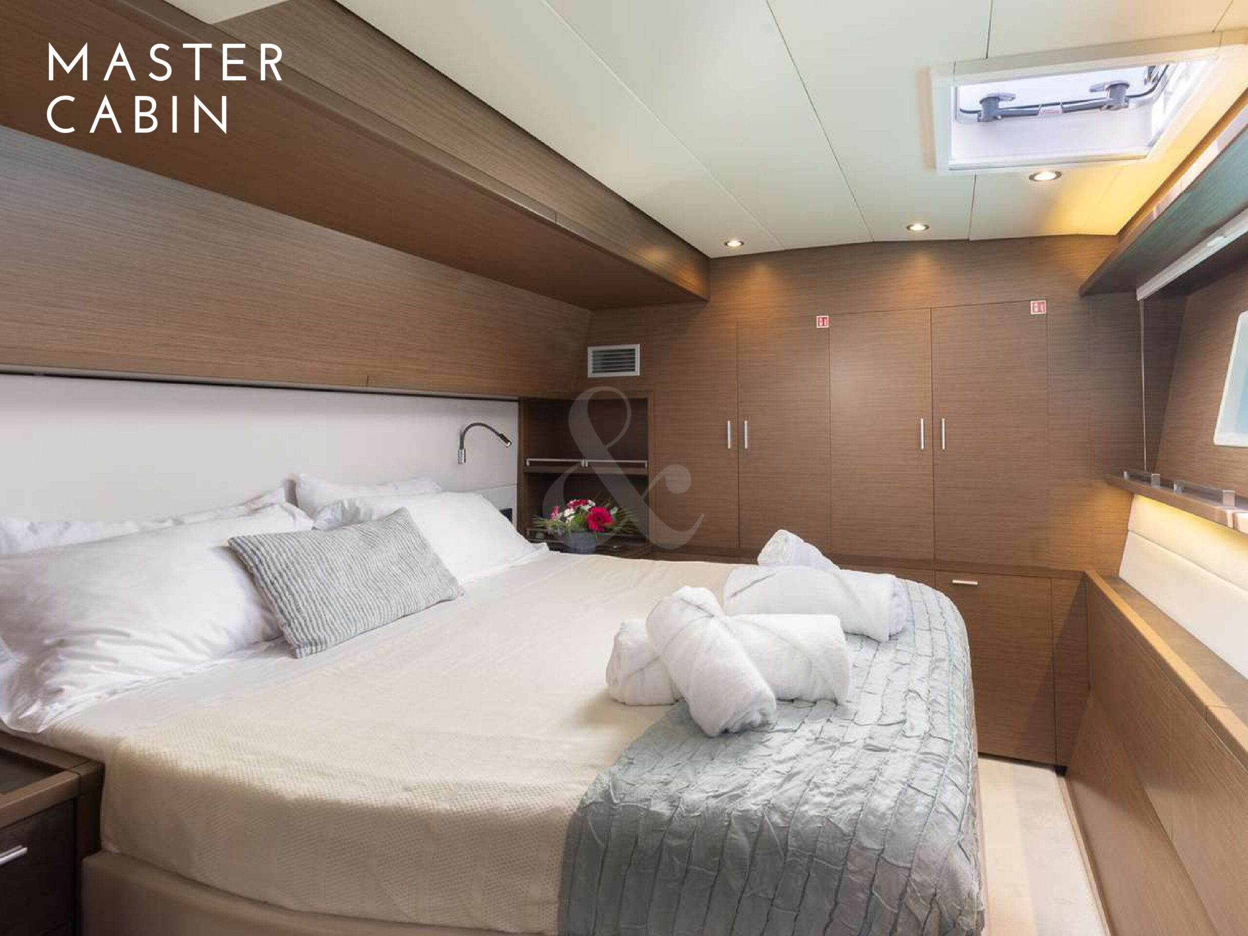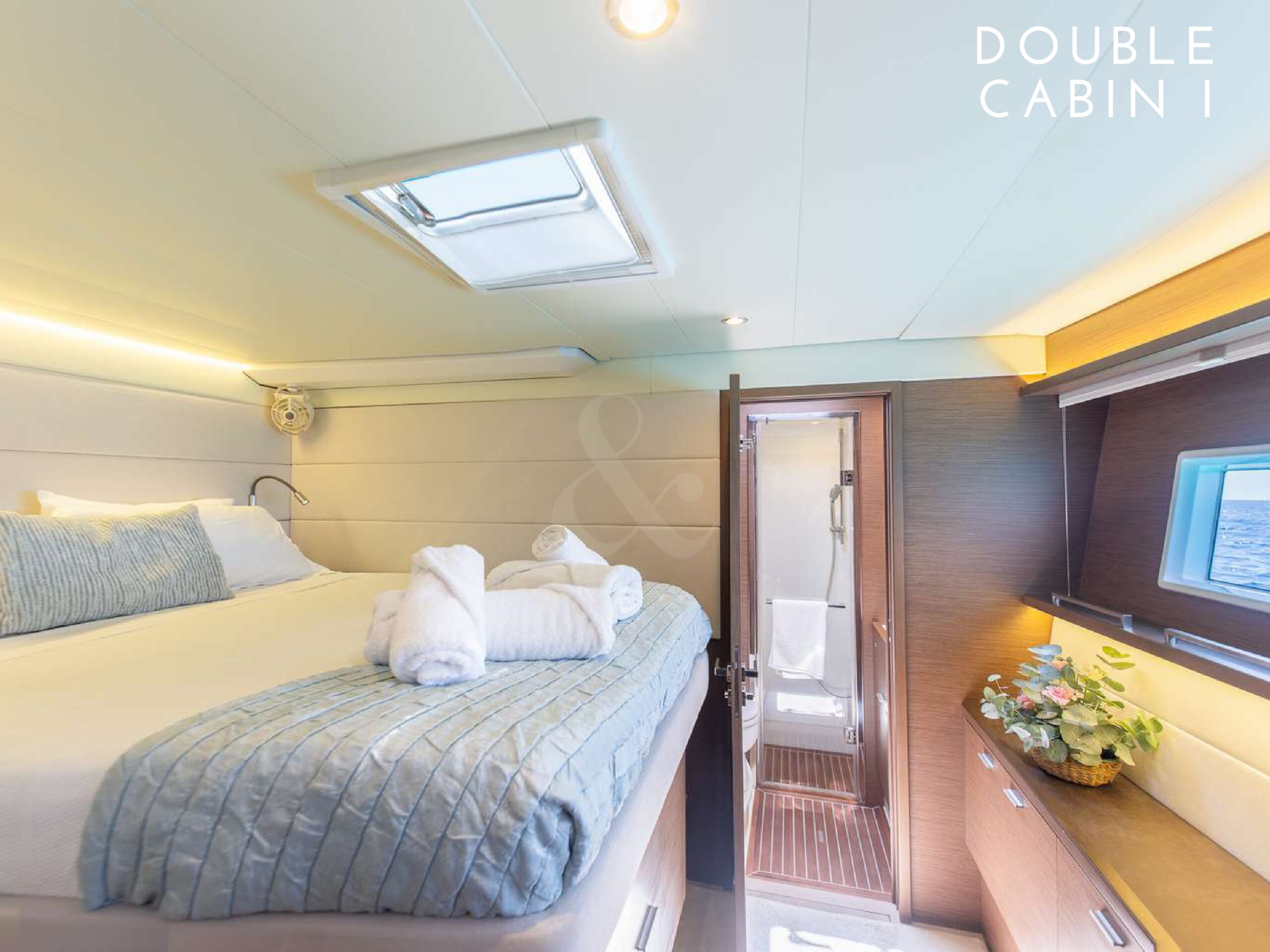 Tu refugio privado: La Master Cabin es una joya de diseño con baño privado y acceso directo a la cubierta, permitiéndote disfrutar del mar en total intimidad.