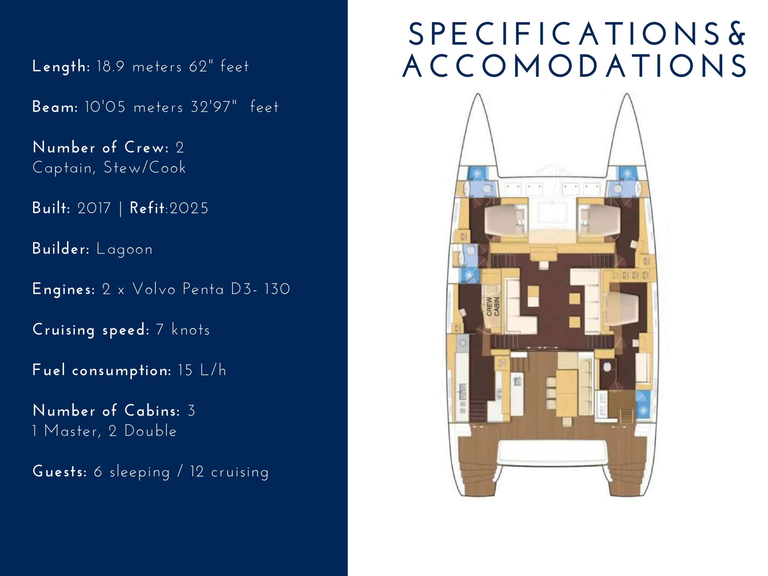 ¿Buscas el equilibrio perfecto entre lujo, espacio y privacidad? El Lady Fiona es un Lagoon 620 (Refit 2023) diseñado para ofrecer una experiencia de navegación superior. Con capacidad para solo 6 invitados, este catamarán redefine el concepto de «mansión flotante», ofreciendo una exclusividad difícil de encontrar en otras embarcaciones de su categoría.