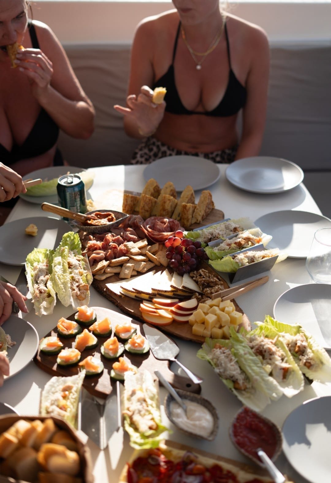 • El Precio Incluye: Tripulación profesional (Daniel y Natasha), Combustible incluido, Tapas, Paddleboards, Equipo de snorkel y Juguetes hinchables.