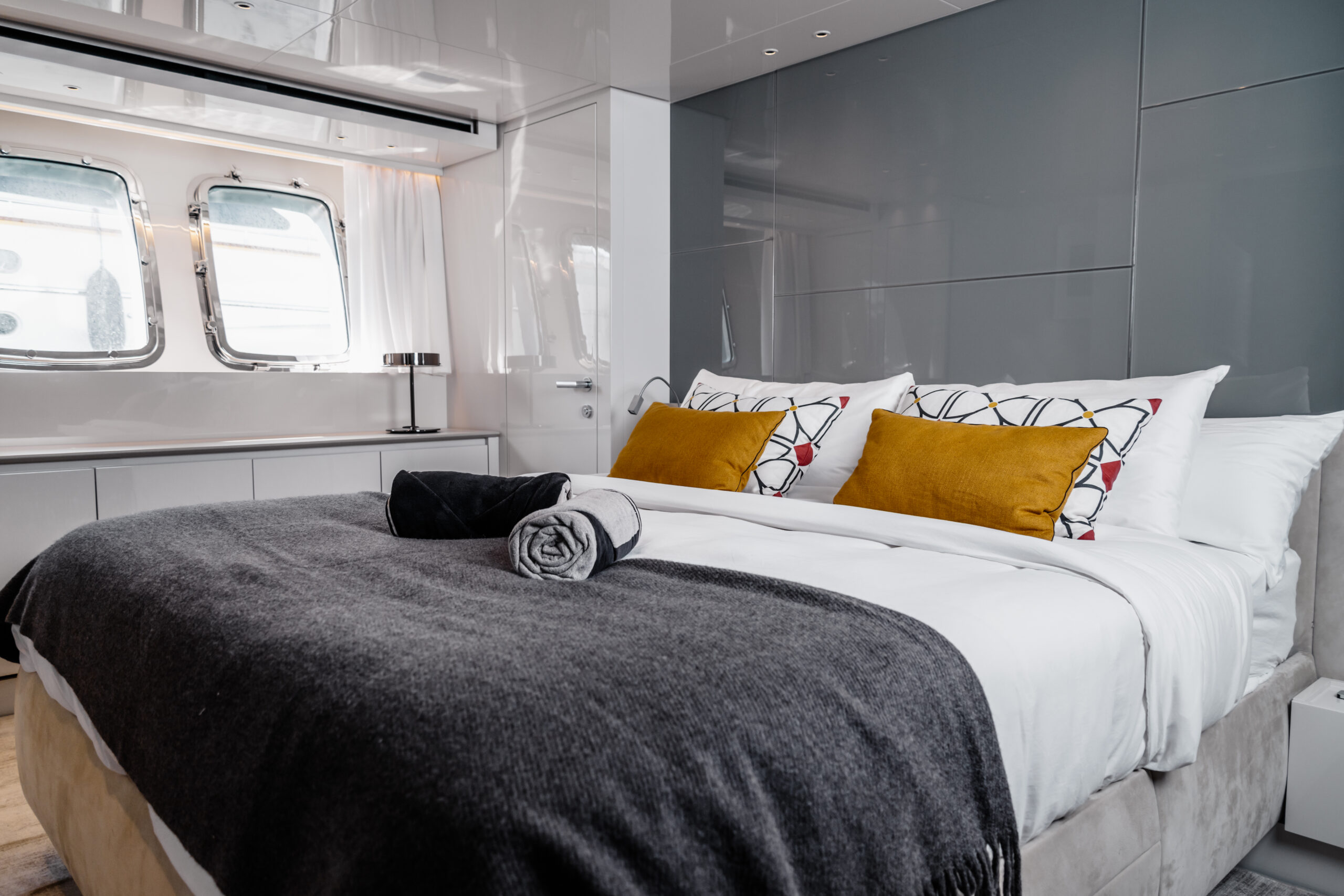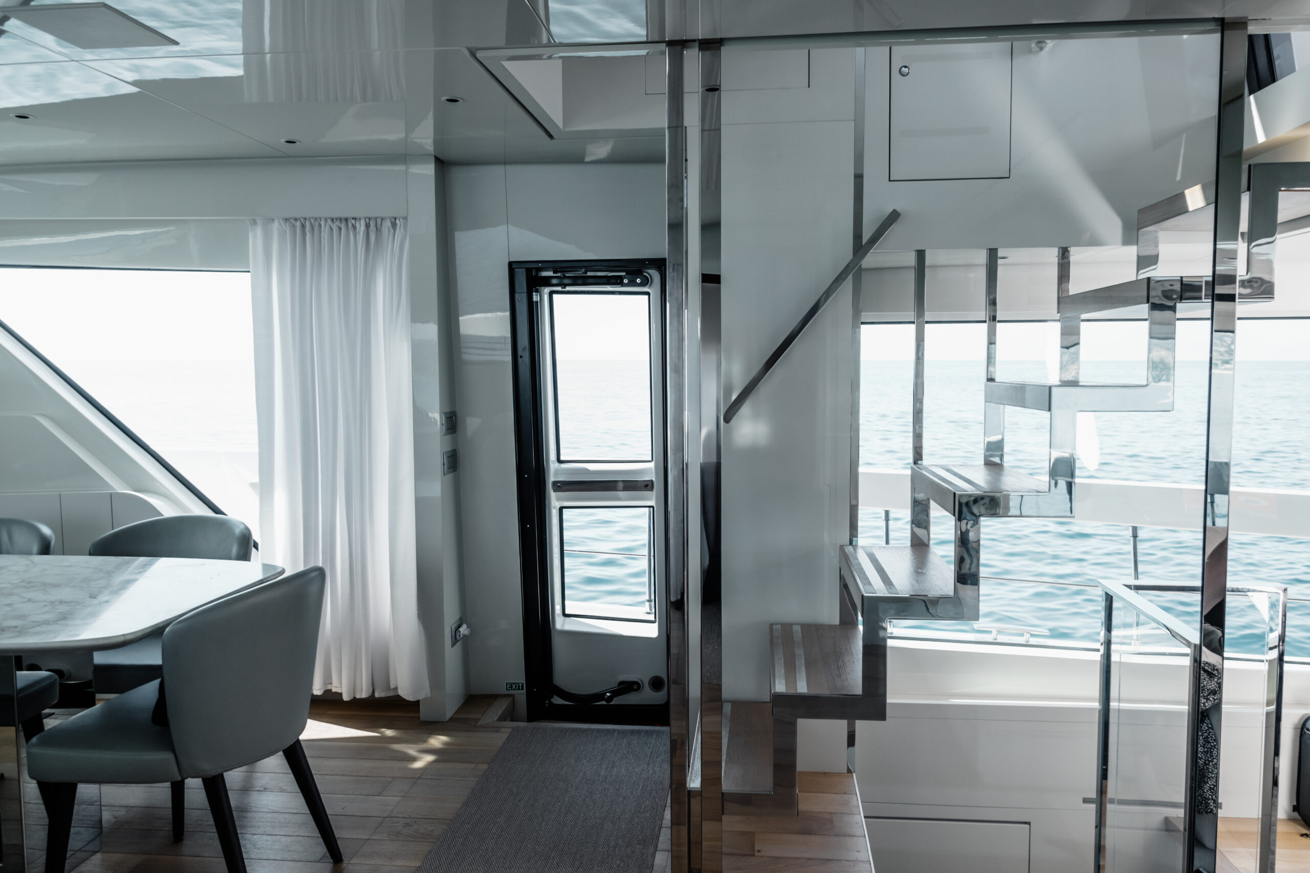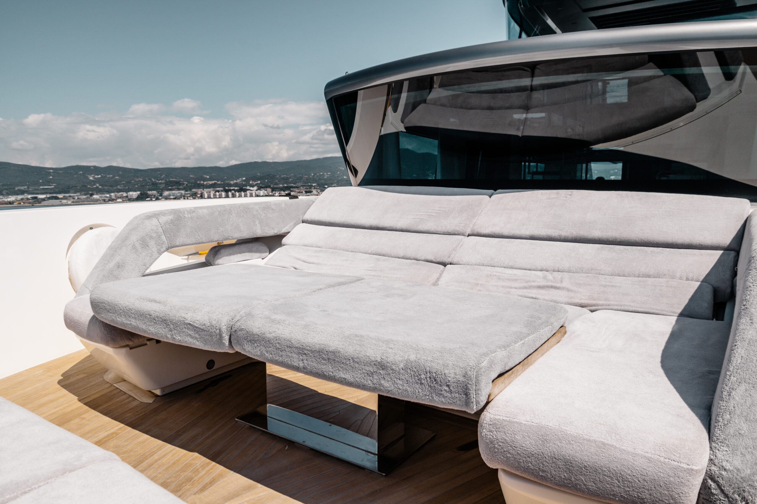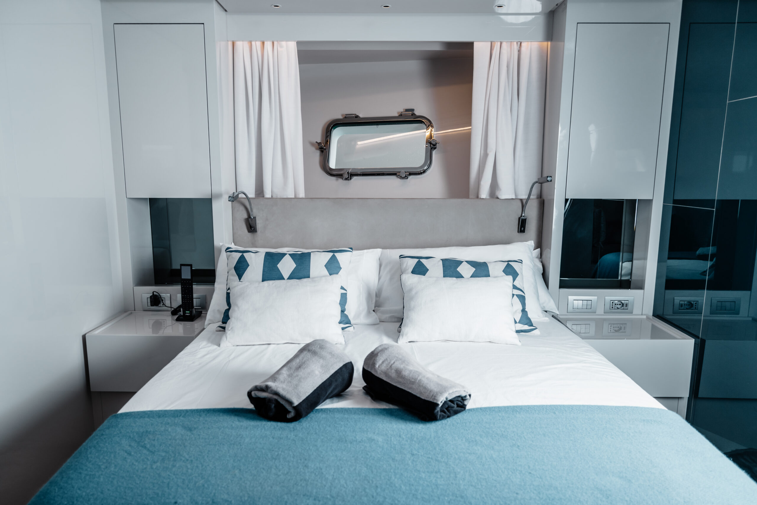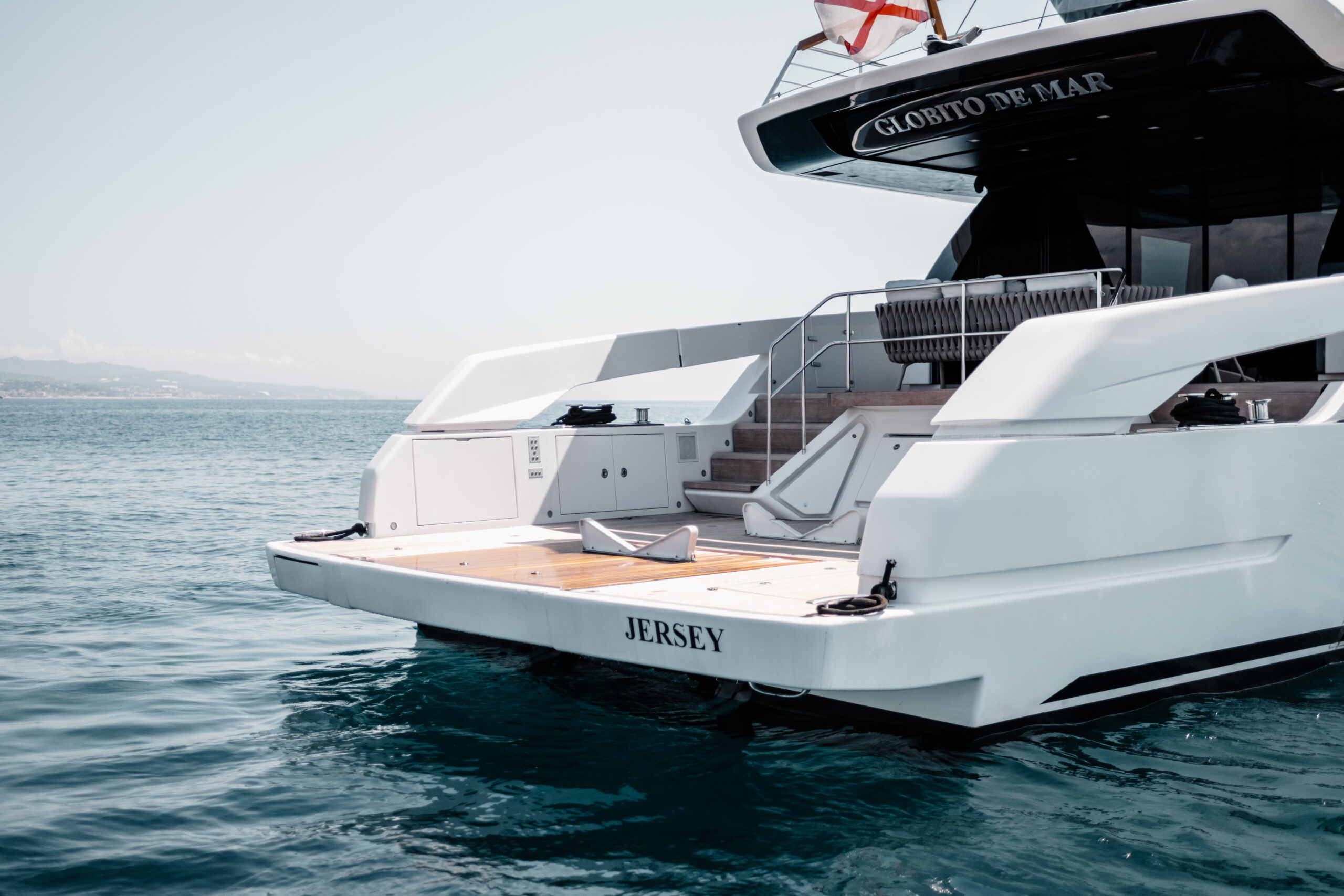 Su mayor atractivo es el Beach Club en popa: una plataforma a ras de agua ideal para disfrutar de los Seabobs o relajarse sintiendo el mar. Con estabilizadores para una navegación suave y 4 camarotes de puro diseño italiano, este yate es tu refugio privado más exclusivo.