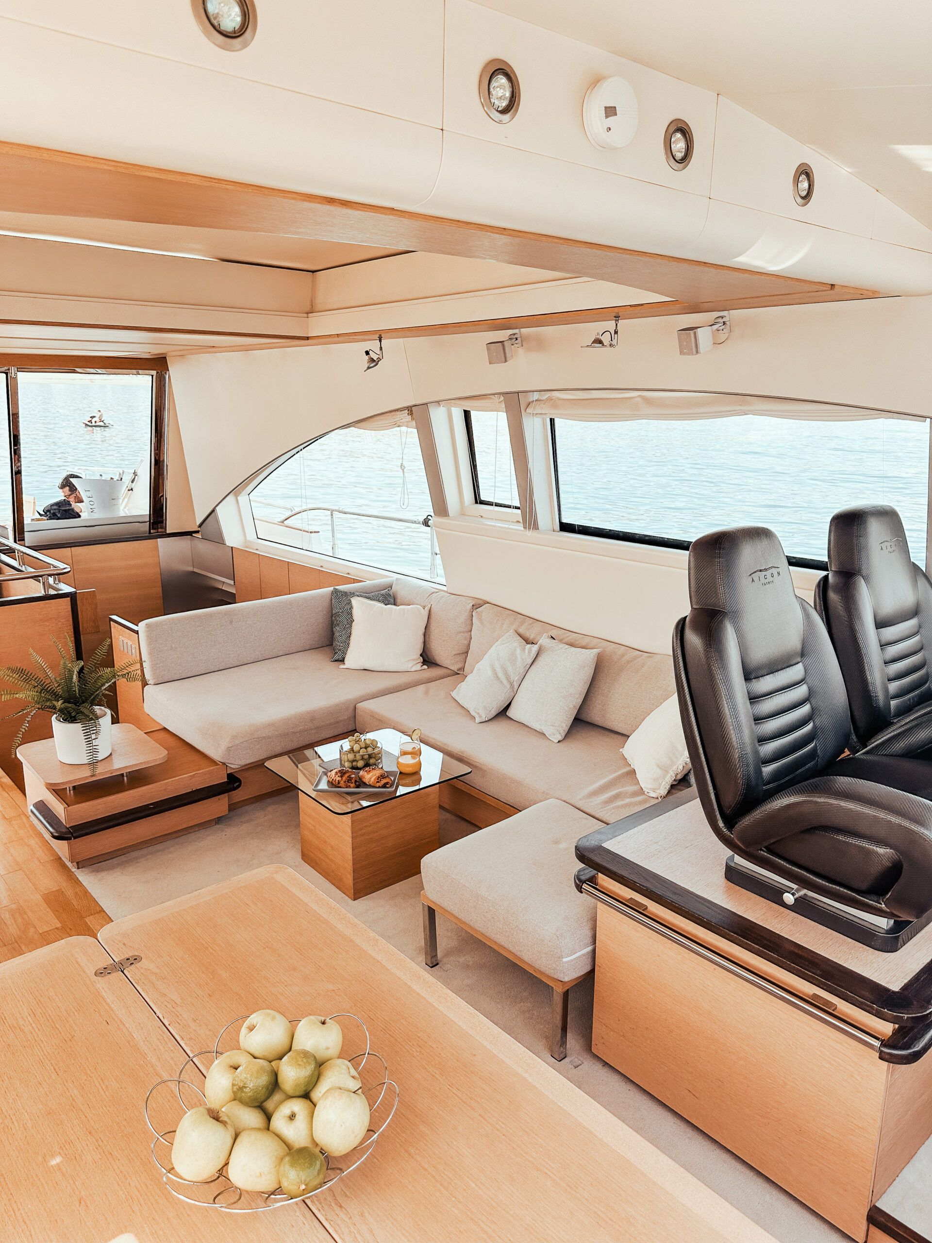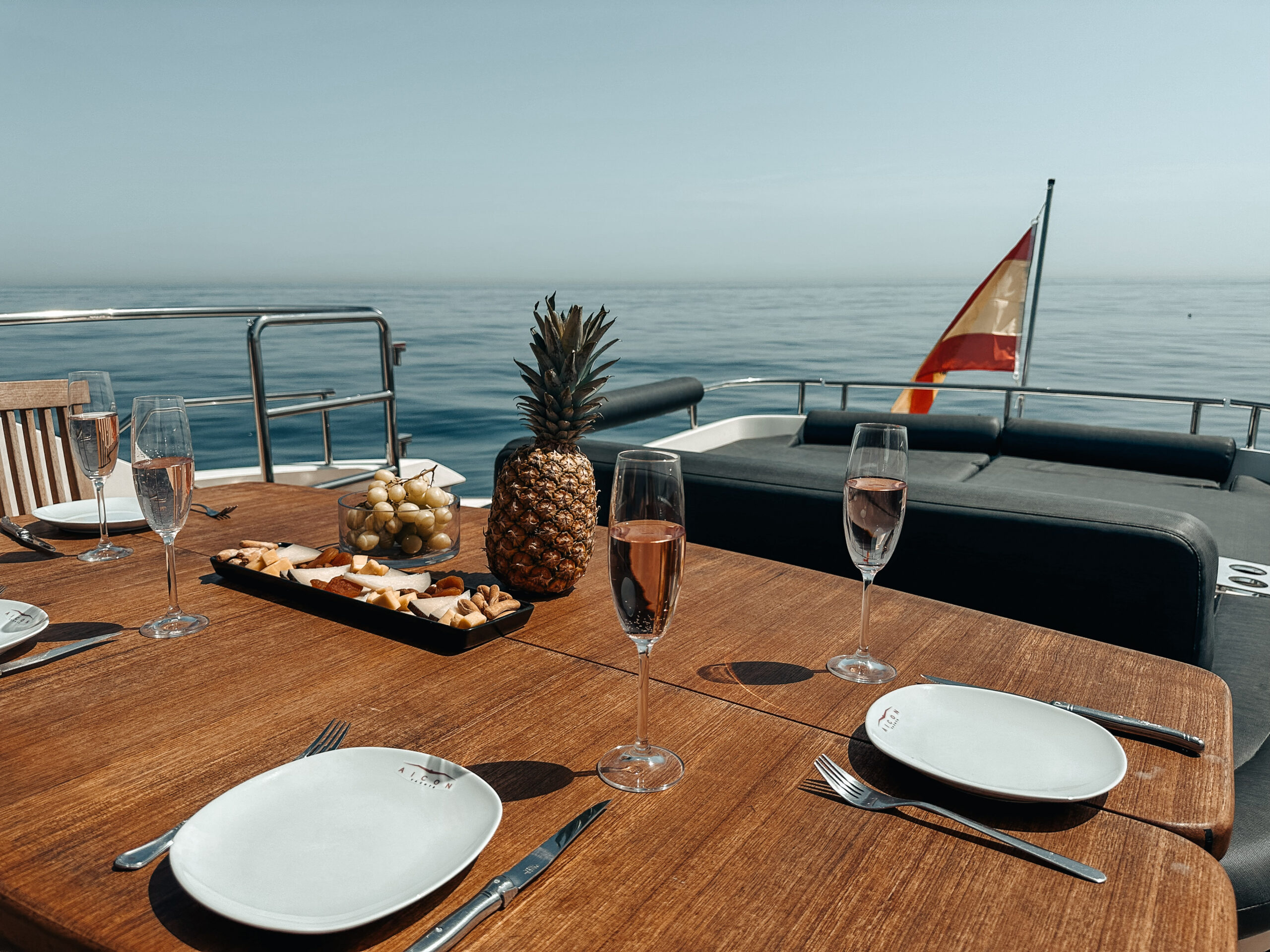 Tripulación a tu servicio: Nuestro equipo profesional se encarga de cada detalle, desde la planificación de rutas personalizadas hasta asegurar que tus refrescos favoritos estén siempre listos.