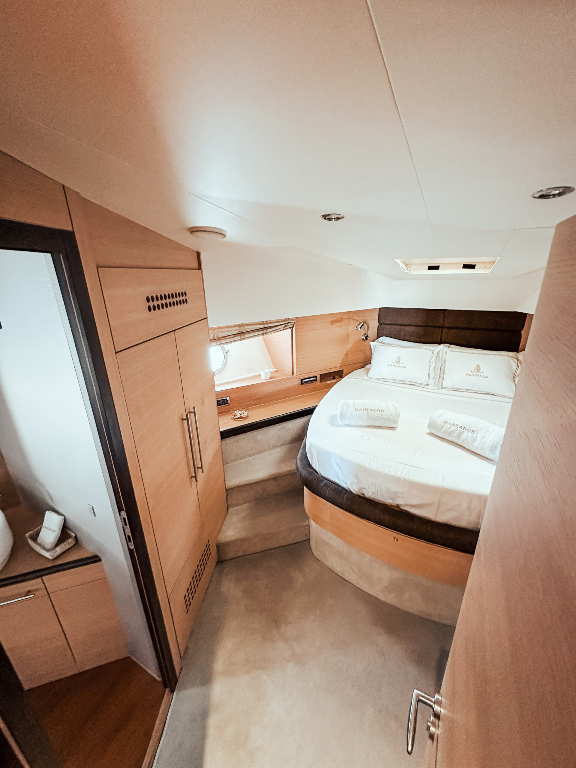 Navegar por el Mediterráneo debería ser una experiencia de libertad absoluta, no de limitaciones. El Manzanos II resuelve el problema del espacio y el movimiento gracias a su amplia manga y a sus estabilizadores de última generación, que garantizan un fondeo tranquilo incluso en aguas abiertas.