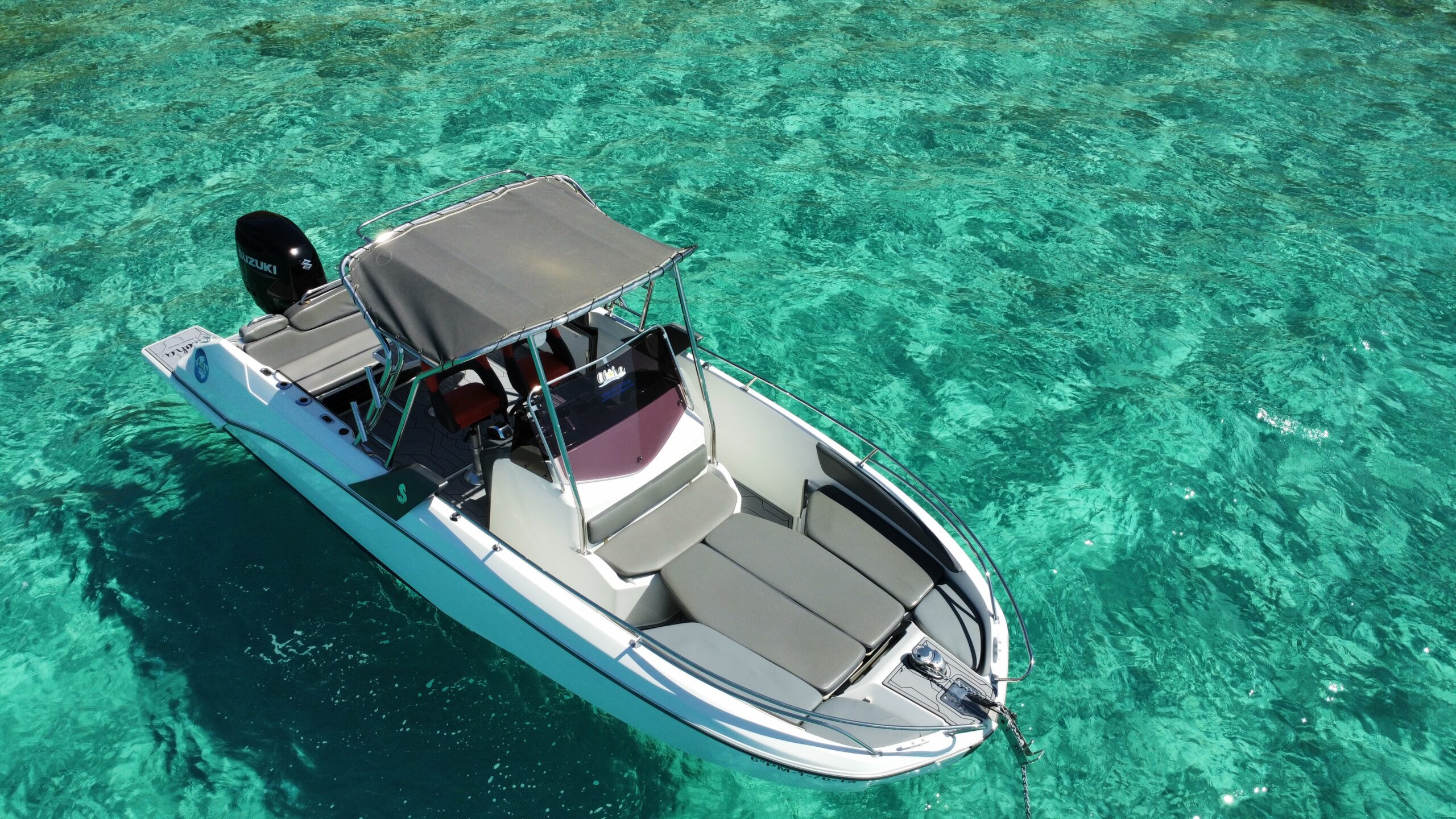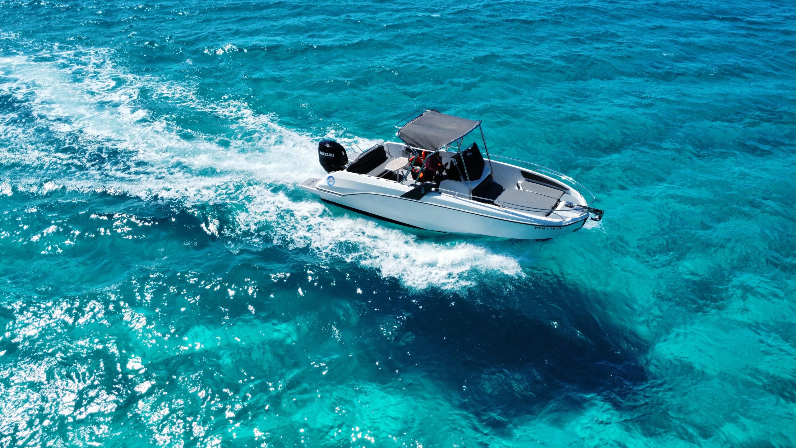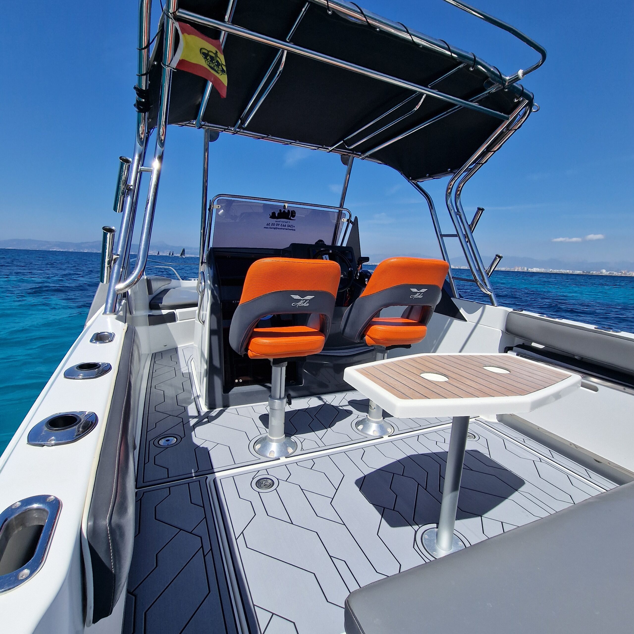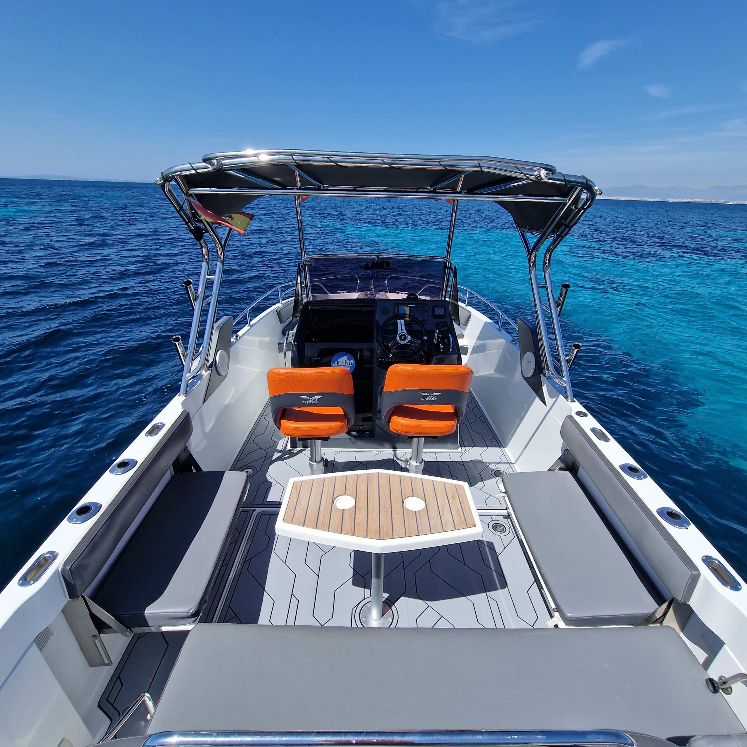The Beneteau Flyer 7.7 (2024) is a modern, comfortable and versatile motorboat, perfect for enjoying the sea in Palma de Mallorca. Departing from Club Marítimo San Antonio de la Playa, it’s ideal for half-day trips, full-day charters or unforgettable sunset experiences.