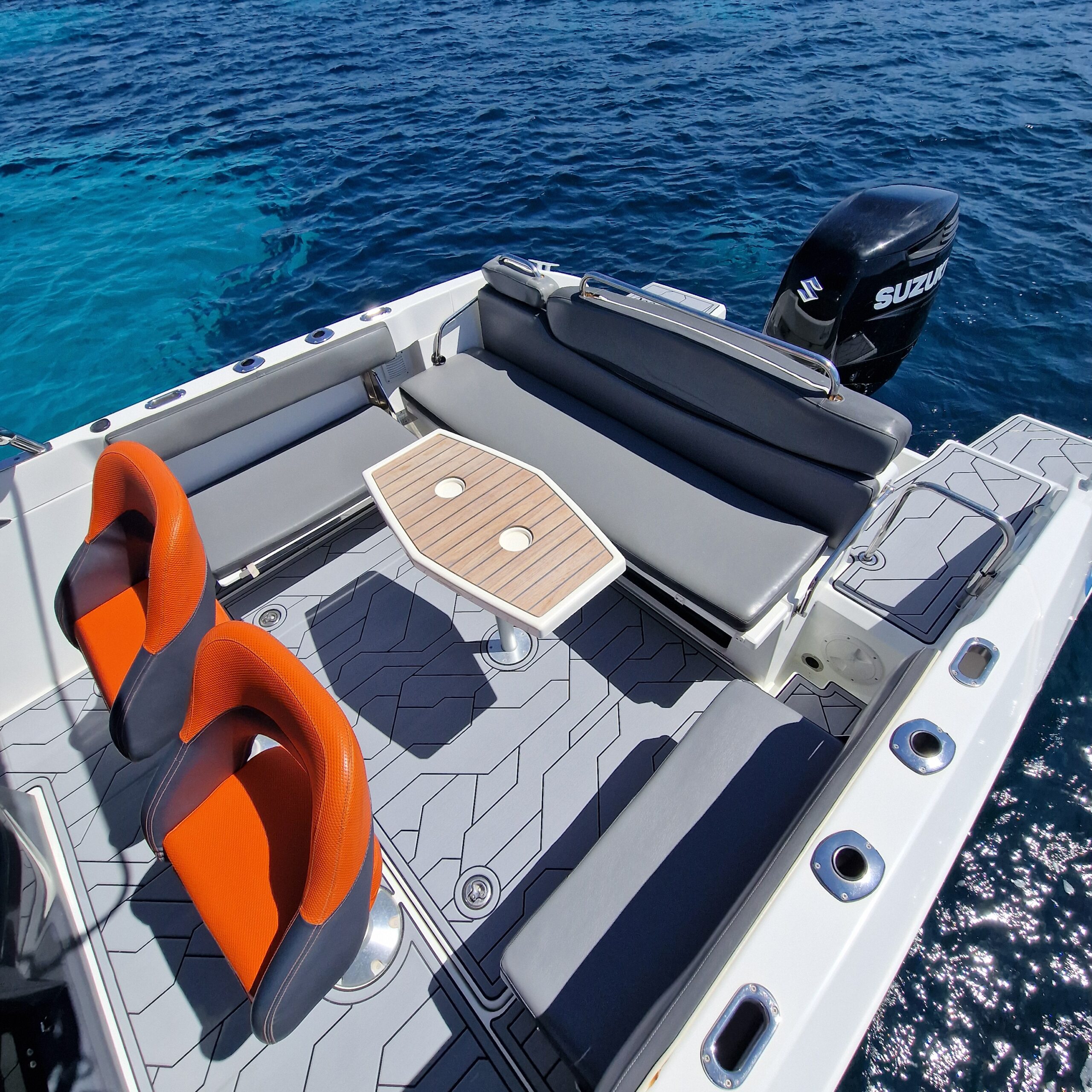 With generous deck space, a large sunbathing area and excellent stability, this boat is perfect for families, groups of friends or couples looking to explore nearby coves, swim in crystal-clear waters and relax onboard.
