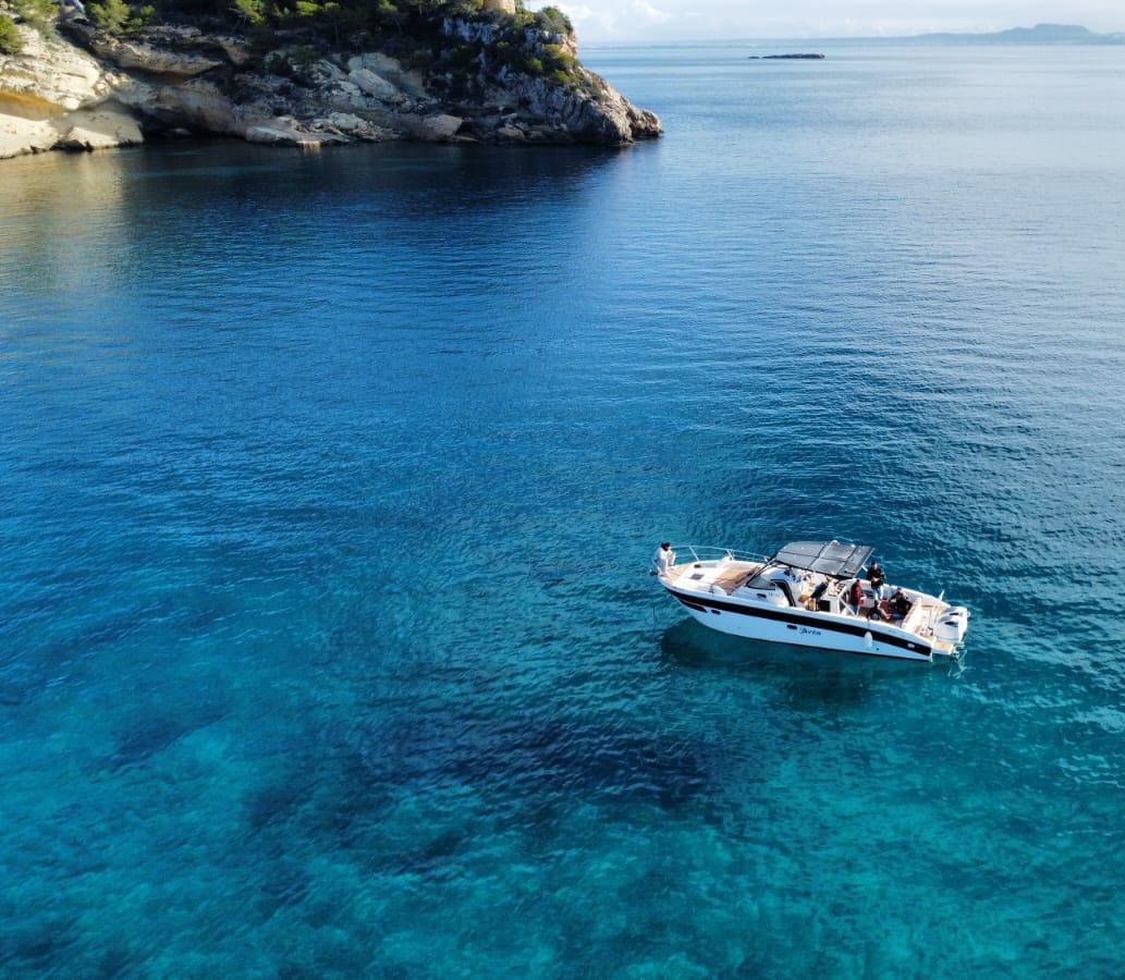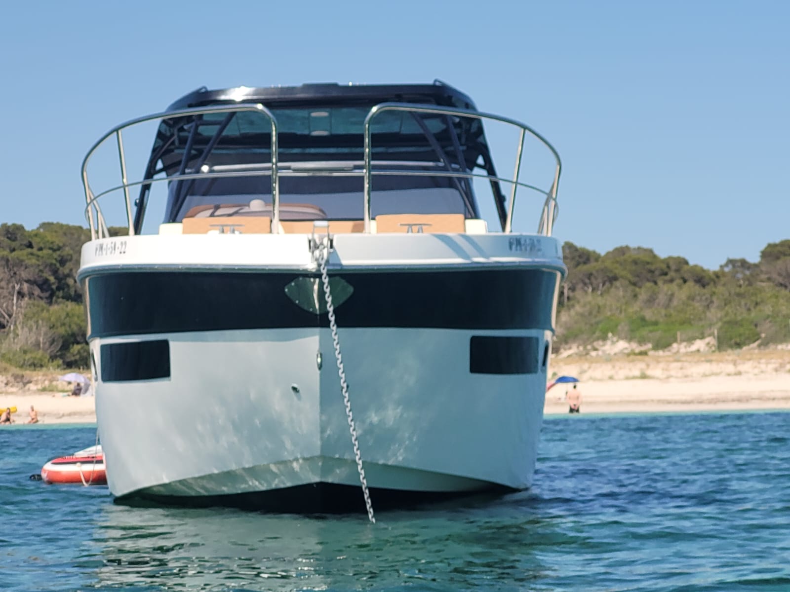 The GRI GRI Saver 330WA is a spacious and elegant motorboat, designed for guests looking for a relaxed and premium boating experience in Mallorca. Departing from Marina Palma Cuarentena, it is ideal for both half-day and full-day charters.